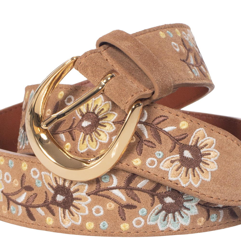 ORCIANI BASIC ROUND PEACH FLOWER SUEDE BELT
