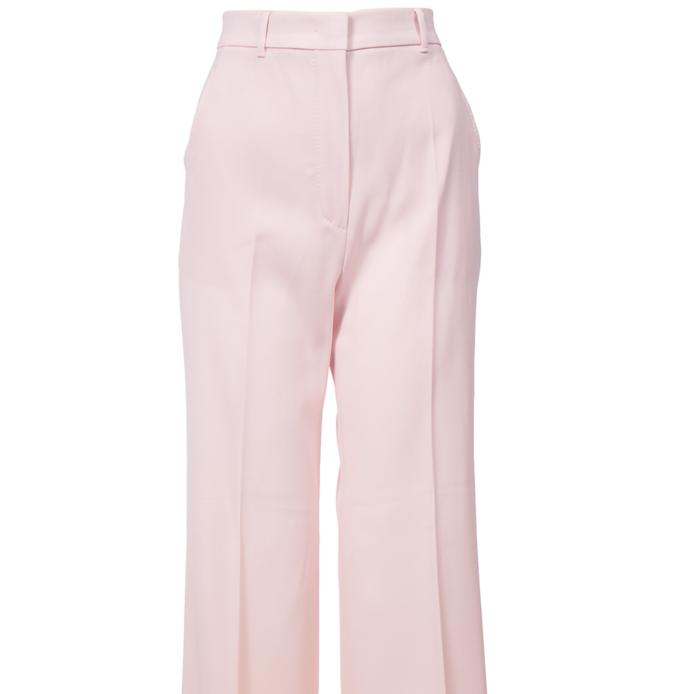 - Pantalone straight leg, in crepe satin di lana comfort.